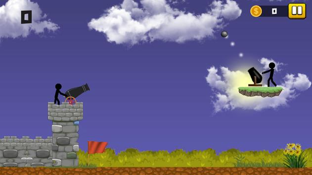 Stickman Cannon Shooter game has a easy intuitive control. Tap on the screen and pull to charge the cannon and select the tension force. Release to launch the projectile into the enemy.