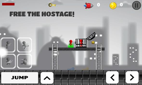 Use your hands to hit and legs to kick in order to kill them all. Then get a key and free the kidnapped hostage.