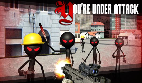 In this brand new deadly shooting game thats jam packed with thrills, you will have to hunt down all the stickmen who are trying kill you. You are on their hit list so shoot them down before they strike you down as their anger is out of control and they're hungry for your blood. The Stickmen want you DEAD so survive as long as you can by dodging death and destroying the enemy.