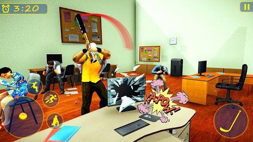 Having a bad day at the job and can’t bear your annoying boss? It's time for some action. Grab a melee weapon and destroy office stuff. Smash everything that comes in your way laptops, computers, office furniture and more. Wide range of weapons including knife, baseball, rifle, shotgun each with different destructive power. Hit office buddy and kick the boss to calm your anger and crush everything at workplace to release stress and anger in stress games.