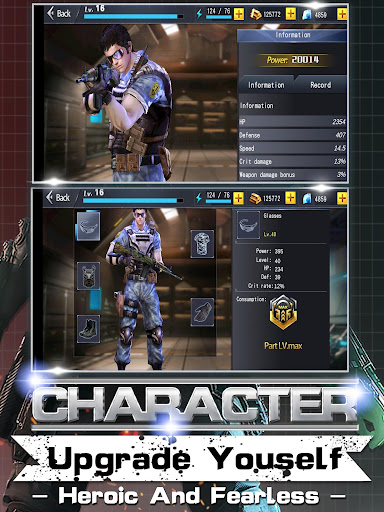 *Unique character upgrade system, make your character become more powerful in the war, take more damage, and create more fire output!