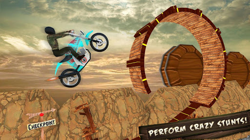 Grab your trial bike, wear your stunt bike suit, strap on your helmet and beat millions of bike stunt extreme speed riders and players. Take yourself into the world of bike games adventure and top the racing charts with your top stunts, freestyle stunts and extreme speed stunts! Get ready to ride extreme crazy stunt riding trial bikes in this amazing bike simulator game as we bring you this bike racing which is challenging & will keep you in the stunt zone for hours! In this speed stunts & bike challenge you are the sole motorcyclist so enjoy bike race free and great stunting on extremely challenging race tracks & polish your motorcycle racing skills in this bike game.