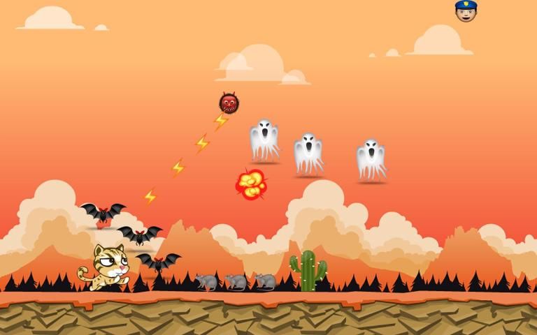 Jump and run and escape maleficent ennemies, collecting mouses and be really careful! As the obstacles might trip you down to stop you from completing each of every levels!