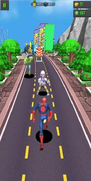 the best sprinter game 3D for the end of the year and the beginning of 2018 is the subway spider run man superhero surfer super world, its mission to eradicate crime and defend the truth, super hero consisting of this aveng er team conquer opponents that blocked the bus and train, first time run you will help the spider a man and then you can choose the other super hero man, thoro son anake Odinsono , Si ijo , bat hero man, and certainly the less exciting is there captain who comes from america