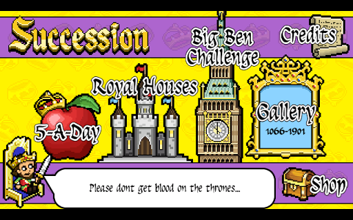 Succession is a fun to play game with an educational purpose. Its aim is to teach the player all about the kings and queens of England from William the Conqueror to Queen Victoria.