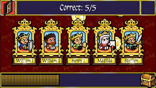 There are four game modes. Start with Five a Day, this includes three mini games and cycles through five different kings and queens each day.