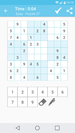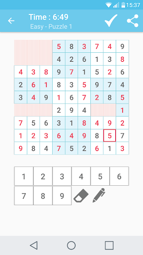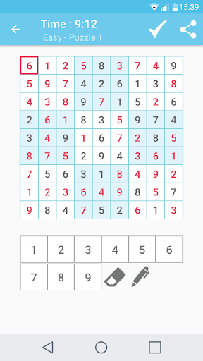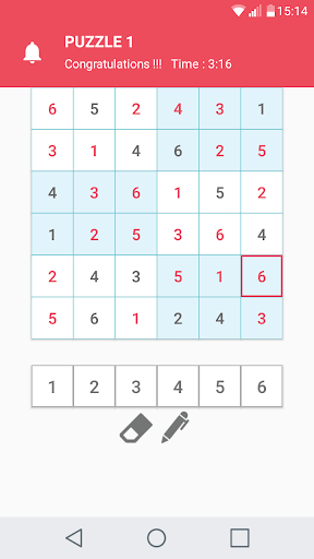 * 4x4 Sudoku(Easy,Hard), 6x6 Sudoku(Easy,Medium,Hard), 9x9(Easy,Medium,Hard)