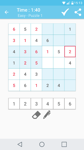6x6 easy puzzle 27 & puzzle 52, the 2nd block at lower right corner, it shows 4 when i press 6.