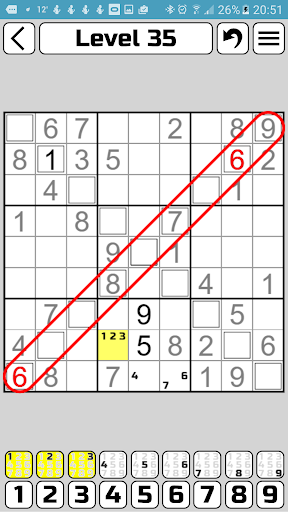 In our application, we have created 12,000 unique levels with varying degrees of difficulty. If this is your first time playing Sudoku X, try the first beginner level. Each difficulty level contains 2000 unique levels. Where level 1 is the easiest and 2000 is the hardest. If you can easily solve the 2000th level, try the first level of the next difficulty level.