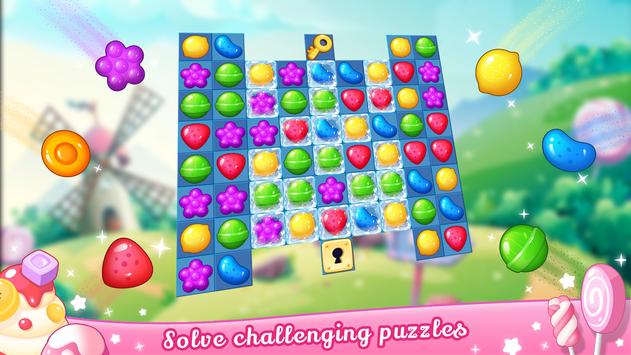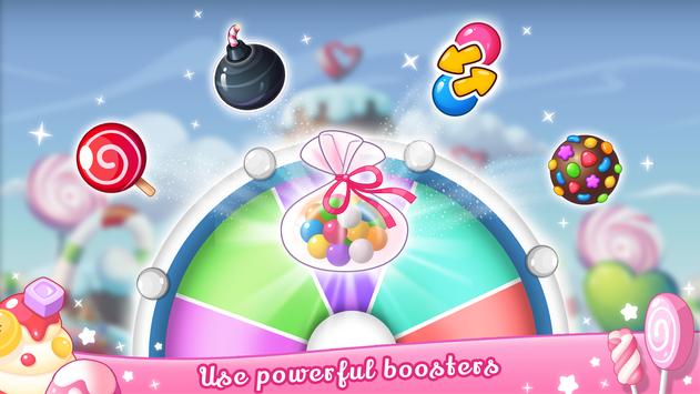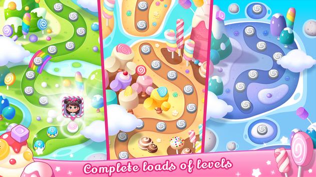 Progress to the next level and explore a sweet candy world full of adventures. Clever switches and foresight are rewarded with cascading candy combos and tasty rainbow colored explosions. Plan your moves by matching 3 or more sweets in a column, row or in different shaped patterns. Use your boosters wisely to overcome tricky obstacles. Complete loads of levels and regularly come back for more.
