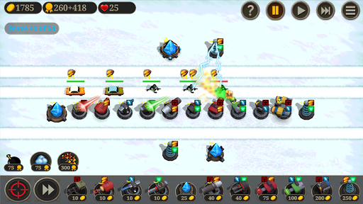 Every tower has 3 upgrade level. Upgrade effects towers attack, effect radius and reload times.To upgrade, tap on desired tower and click upgrade icon. Don't forget to upgrade your towers during game(level specific) and before game(permanent upgrade)