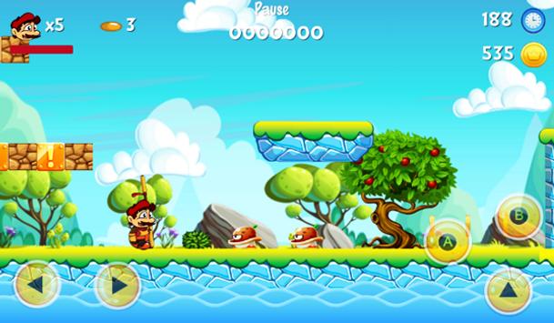 In a forest adventure world, super sboy will fight enemies like monster turtle, red birds, spiders, ladybugs, and crabs.