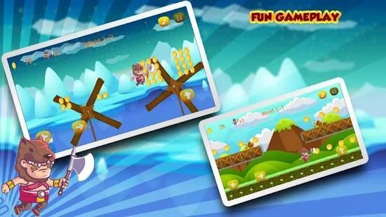 clear all enemies in your way and defeat all bosses. "Super Barbarian World" will give you classic feel throughout the game with side scrolling view.