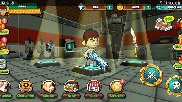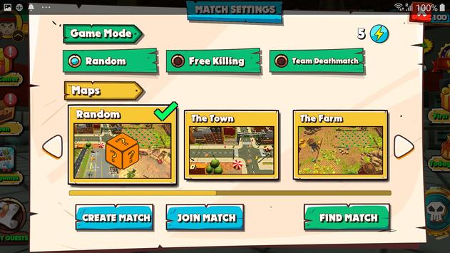 Beside your skills, have many weapons, item to you use. Guns, secondary weapon, bomb, rocket...many and many. You can pick up your favorites and starting defeat the other players!