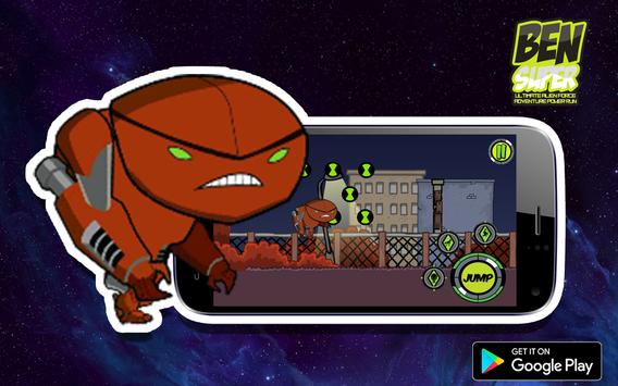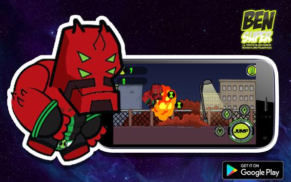 To complete the platformer ben entertainments Super ben's 10(ten) will ricochet and keep running up to speed on various obstructions, fight and shoot against fire fly ninjas, the bats, reboot, ten, Heatblast, humungousaur, tennyson, skeletons, toys, kevin 11, Sharks, compel omnitrix and Omniverse various diverse animals