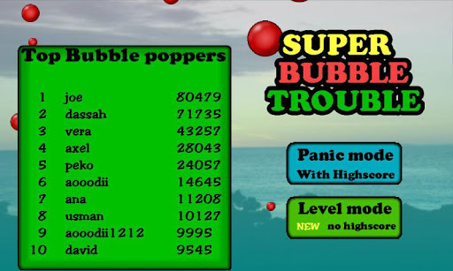 Shoot bubbles, stay alive, collect coins and power ups. Two game modes (panic and levels).