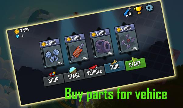 Hold your gas and keep your eyes always on the stage. There are a lot of vehicles and tunes to upgrade too. So face the challenges with different stage ( factory, countryside, seasons, desert, ...)