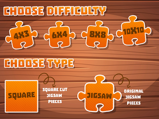 All you have to do is, put the puzzle pieces together to reveal the whole picture for jigsaw puzzles and you have to move square to rearrange them in correct way to reveal whole picture.