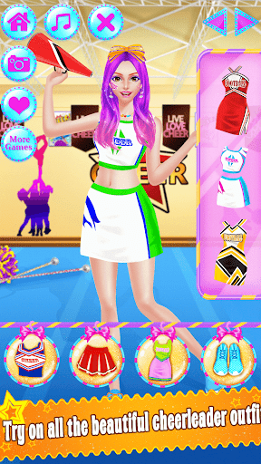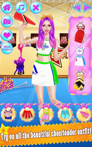 - Lots of cheerleading outfits and makeup to try on