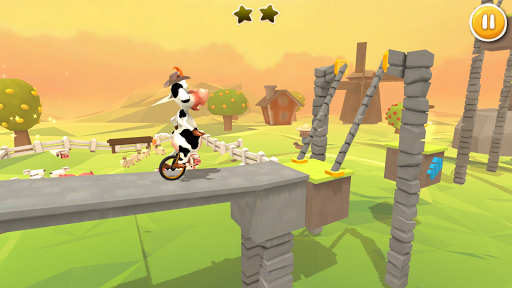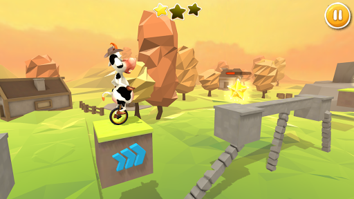 Balance the cow on Unicycle and help it cross all the hurdles. Be careful with the wheel, or the cow will fall. Unlock more characters to balance on your unicycle.