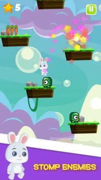 happy new bunny Run action adventure game jump, bounce or slide and jump on green despicable monsters enemies head to stomp them and crush them