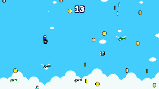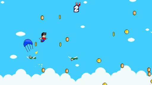 - Fun and jumping and flying game with 8-pixel and 16-bit 2D graphics (classic retro style).