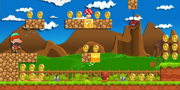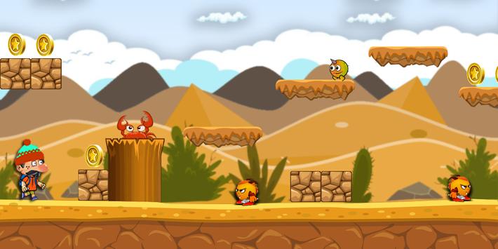 must smash enemies while run ing and jump ing to cross so many threats, in his Super Boy Adventures. Super Hat Boy must pass threats to run to target world to get to the temple or castle. On his road, Super Hat Boy can use weapon to kill and destroy monster in his way to the castle or temple.