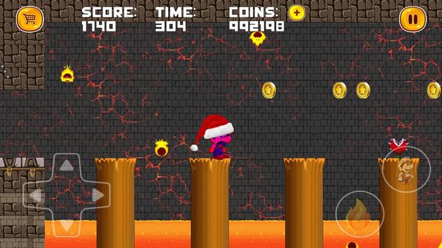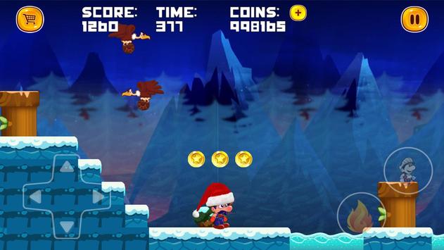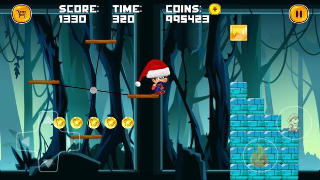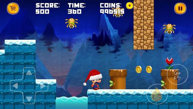 Super jungle runs and jumps across platforms and atop enemies in themed levels.