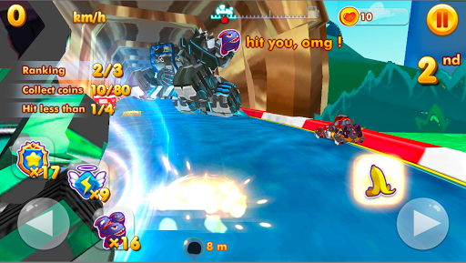 Amazing new Super Kart Transform Racer is very new released of Free kart racing game!! It is the Best car driving Challenge race game on store. In this games you will face amazing environment with beautiful graphic. You must completed all levels, collect golds and coins to upgrade your kart or buy new one.