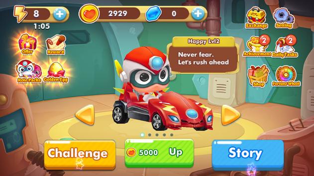 Join the race of cute heroes - Super Kids Car Racing where the cars can transform themselves to real robots and wipe out all the obstacles and opponents on they way to win the race of destiny. Feel the rush, as you tear down the track at breakneck pace in thrilling races. Choose the best hero and car suitable with you. There are five types of superhero - Happy, Sweetheart, Careless, Faith and Careful - all of them are transformable cars. It’s going to be bumpy funny rides with special energy boost and special skills specific to each superhero transform car.