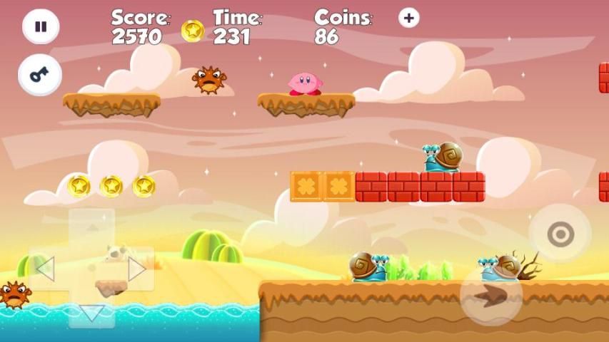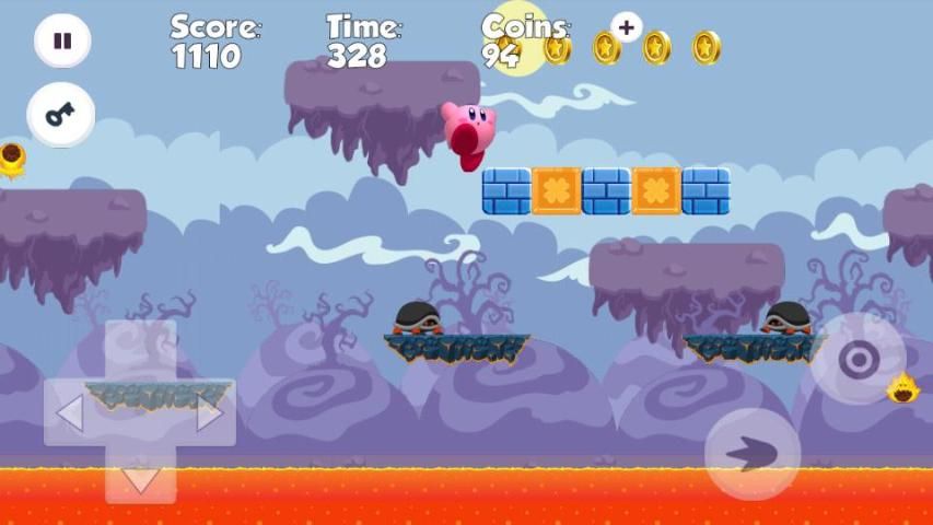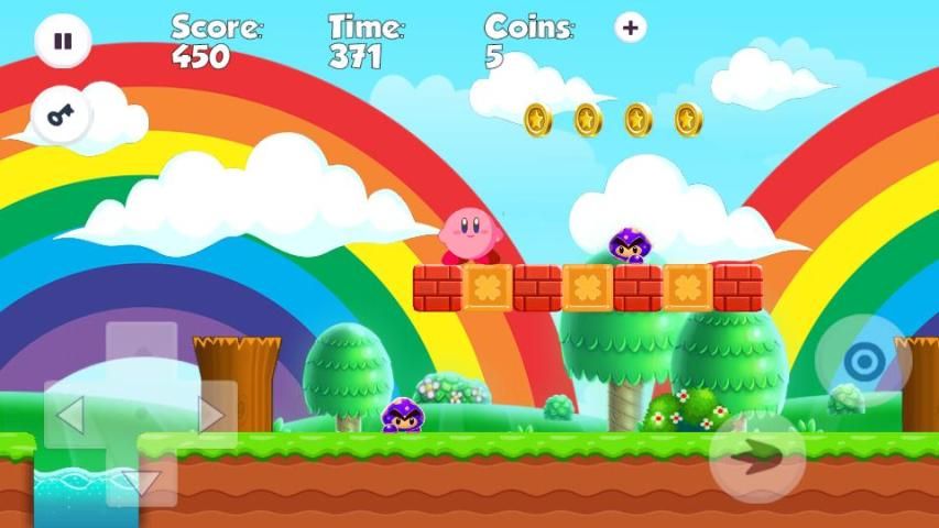 Super Kirdy World for fans of kirdy, kirdy Jungle Adventure Game is classic side-scrolling adventure is very funny game for adults and kids, This game bring back memories of old school adventure game, It contains many difficult levels, Run, jump to avoid obstacles and keep your character alive, this game it has a lot of enemies and the boss of the enemies when you finish your level, I'm giving you the chance to know if you can do it or no . maybe you will meet some other friends, I can't tell you now but I'll let you explore by yourself, then I have a surprise for you, let's do it .