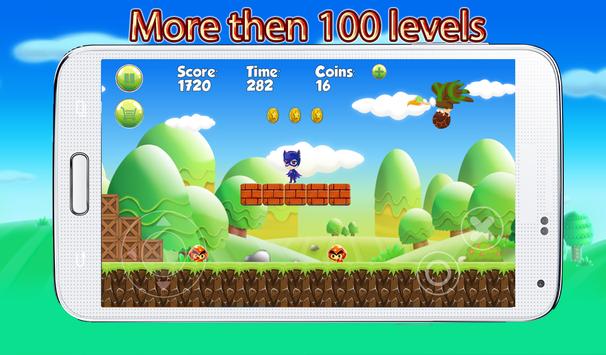 Run, jump,idestroy everything as you help Catboy outrun While you dash and rush through the 100 level , unlock achievements while opening the new levels and challenge your friends with it by smashing the litle monsters as the frog,crocs, spiders and dragons and the super boss at the end .