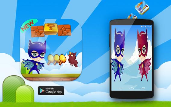super kids masks world adventure game is an epic game to play. Come help Pj-Mask to pass all levels by collecting coins/superpowers and avoiding obstacles , it is a very fun and addictive mini arcade / adventure game .avoid falling bricks and fight against perhistoric enemies.
