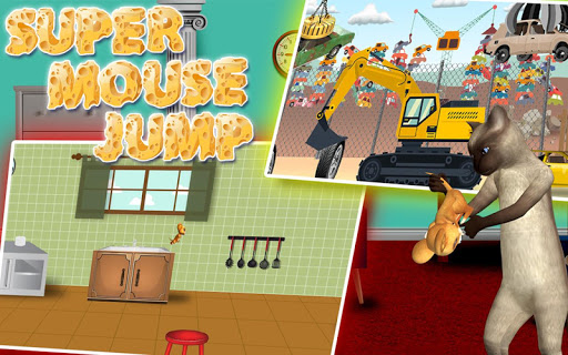 Super Mouse Jump is an adventurous jumping game in which cat is catching the running mouse. The Hero Mouse is an infinity jumper. This amazing mouse trap game comprises of three different levels. Each level has different environment where mouse has to make a super jump on the things placed on his way to escape from the cat. These three environments include Living Room, Kitchen and Junkyard. Further difficulty is added by various hurdles including cutters, mouse trap and jaw cranes. Super Mouse Jump can be downloaded for free, you will be able to play all the levels with no additional payment required. Play funny adventurous game and help mouse to escape from hungry cat. This is a mind blowing cat and mouse game.