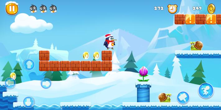 Use on-screen virtual controller to control Super Penguin Adventure Run World Snow. You can run, jump and fight with lots of enemies.