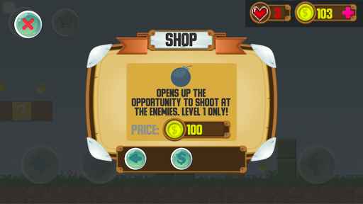 - Store where you can buy additional items such as lives and ability to shoot and break heavy platforms!