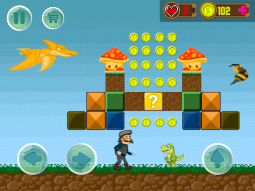 Story starts in the Mysterious World where you have to fight with monsters like mushrooms, mice, scary plants, bats and others. The Platformer Game has many levels and each level has different style world with different enemies! You can find other worlds like lava cave world, castle world. Explore the amazing interesting world and try to survive there! You must finish your adventure and never give up when you lose all your lives. Escape every dangerous world and get to the castle on every level!