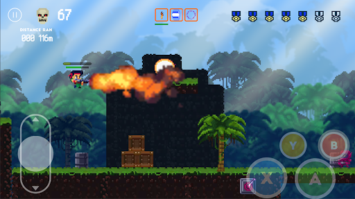 Super Pontra: Runner Corps combines the challenge of classic retro 2D action shooting games with the gameplay of infinite and endless runner games. It takes inspiration from classic platformers to feature gameplay that is intense, challenging and fast-paced.