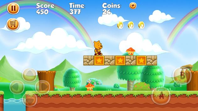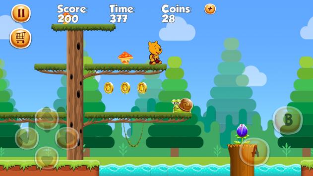 Super Pooh World is very simple and easy game for kids, just run and jump and swim to finish your level before time.