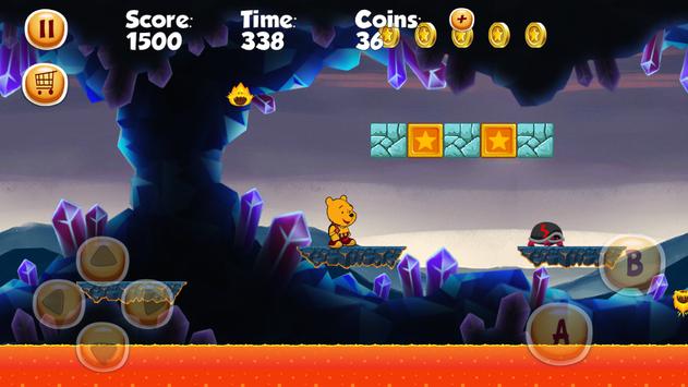 Welcome to Super Pooh World game, this game made for little kids for improving skills of intelligence with playing in this game and live adventures with pooh running and jumping, fight with enemies in order to reach the finished castle on every single level.