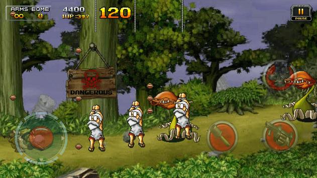 Use the pad to move around and tap to jump and shoot.