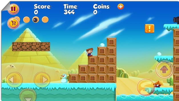 He will have to jump and run over obstacles, fight against bees, snakes, snails and a lot of other monsters in dangerous jungle, climb up huge stairs and mountains, and explore a lot of jungle, castle - adventure world .