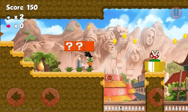 Ultimate game Super saiyan dbz World is the greatest platform adventure for your android! Everything has been carefully designed for you to have a lot of fun! We warn you, itŽs not an easy game so good luck! The game dragon ball z includes: - 5 beautiful worlds - 60 awesome levels - 10+ different enemies - Achievements - Leaderboards - And a lot more features! [How to play] + Use button to jump, move and fire + Addictive gameplay All this game-like-battle saiyan goku or goten completely free, so you should at least try it. We hope all our players have a great time playing it, please rate and thanks a lot for playing!