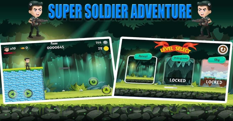 Super Soldier Adventure ou Aventure super soldat est un jeu d'action et Aventure gratuit ,profiter de la course à travers le mystérieux, être le survivant pour atteindre le dernier niveau, courir, sauter et se battre avec de nombreux ennemis.