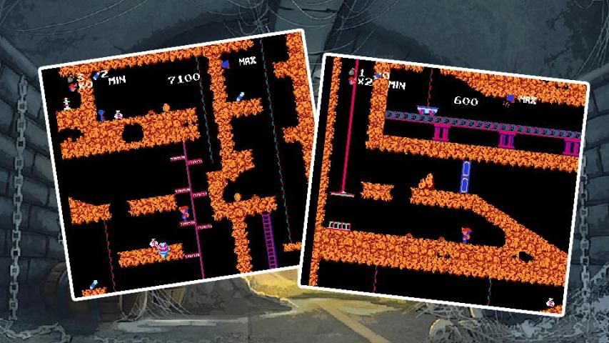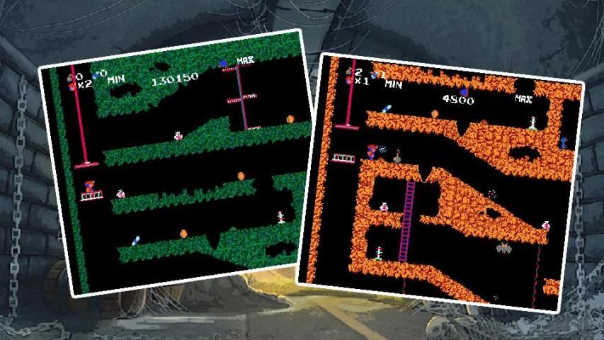 The cave's hazards include bats, which drop deadly guano on the player; and a ghost haunting the cave and appearing randomly, attempting to take the player to the shadow world. The player character can send a blast of air to push the ghost away. However, this renders the player's character immobile for a few seconds, thus vulnerable to other dangers and further depleting their air supply. Objects to collect include sticks of dynamite, flares, and keys. Precise positioning and jumping play key factors in successfully completing the game.