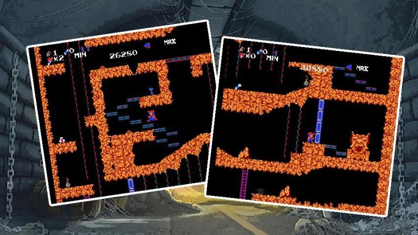 The cave in Spelunker is divided into six levels. Although the levels connect seamlessly to each other, forming one large map, the game clearly signals a level change at certain points by showing the name of the next level and giving the player a bonus, consisting of an extra life and a varying number of points.