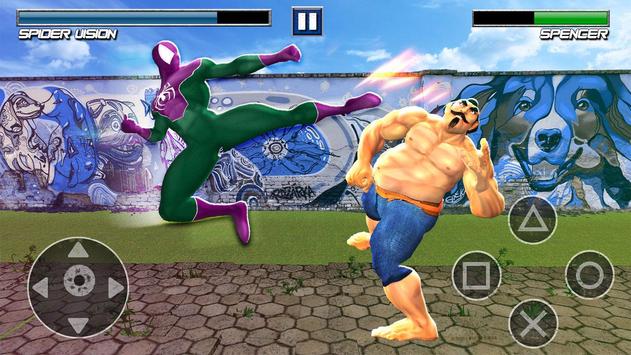 Super Spider Incredible Hero versus big fighters is real kung fu fight game with modern boxing techniques, which you will apply against the ninja killer to knock them out. Learn to punch on mouth, get master in leg kicks and do the fire attack in our action fighting: best fighting games which is best in these action fighting games where you are super hero fight with kung fu fighting skills.