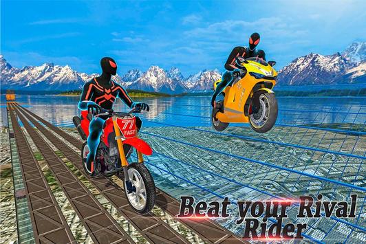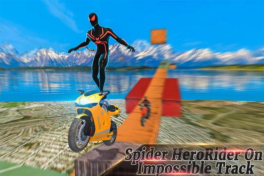 Start your heavy bike ignition and get ready to explore new extremely unique bike stunt racing adventure 3D game with our spider scooter stunt racer. Superhero bike stunts is a thrilling 3D simulation game so get ready and sit on the riding seat to make the outstanding action air stunt. Superheroes bicycle stunt, ride your high speed bike and enjoy as an amazing spider hero bike riding simulation. Ride on the multiple impossible obstacle tracks to improve your ultimate superhero moto bike riding skills. Drive your bike on the difficult mid-air ramp routes, do some crazy jumps and park your motor cycle on the right parking place with spider bike parking game and complete your lap from the impossible road to survival. A superhero bike stunt is an awesome skyscraper ride by enjoying the top stunts in this motorbike stunt game.