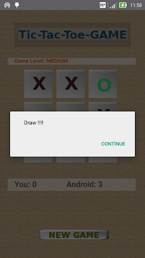 Enjoy playing the classic game of Tic Tac Toe on your Android device. Super Tic Tac Toe game support one player so you can against android device. The game includes three difficulty levels easy, medium, hard. You can