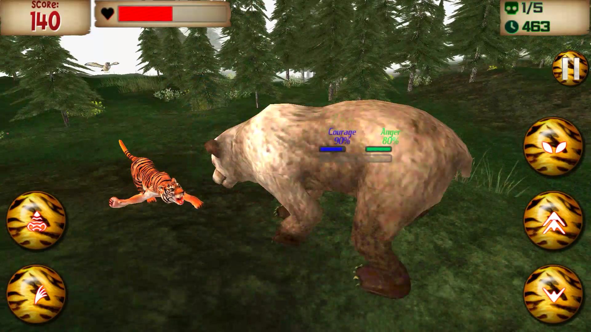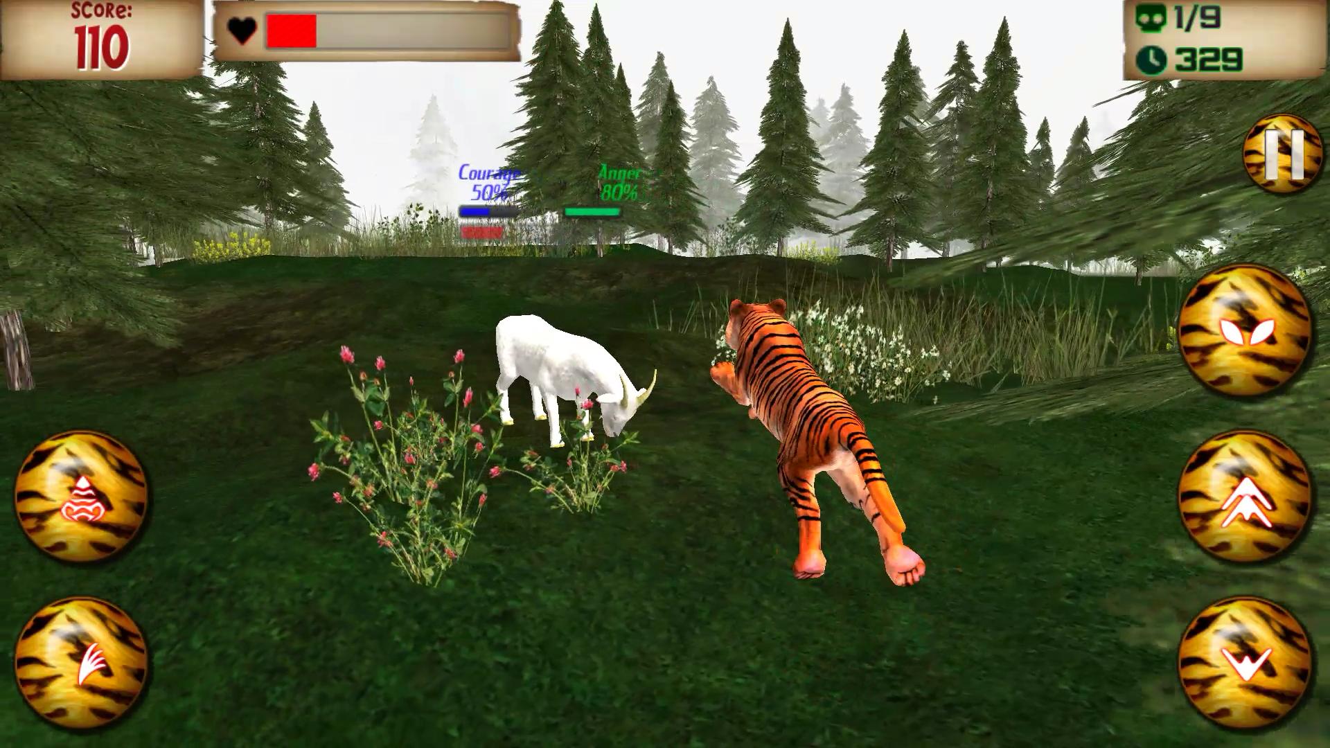 All of these animals have main two parameter varying according to levels, courage and angry. They have also dozens of secondary parameter, speed, hungry, rotate and maneuver factor, etc... Smart animals attack to tiger according to self parameters.